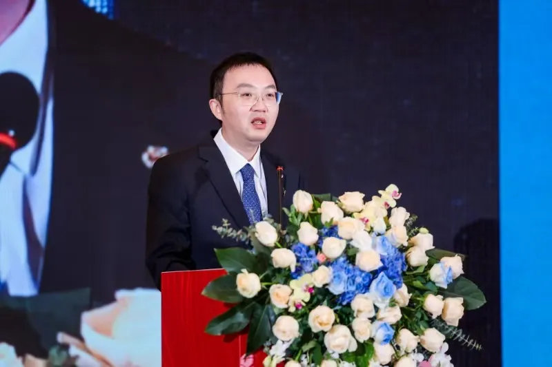 中国矿产资源集团大数据有限公司党委委员、CTO赵鑫龙做题为《打造新质生产力 塑造数据新业态》的演讲。